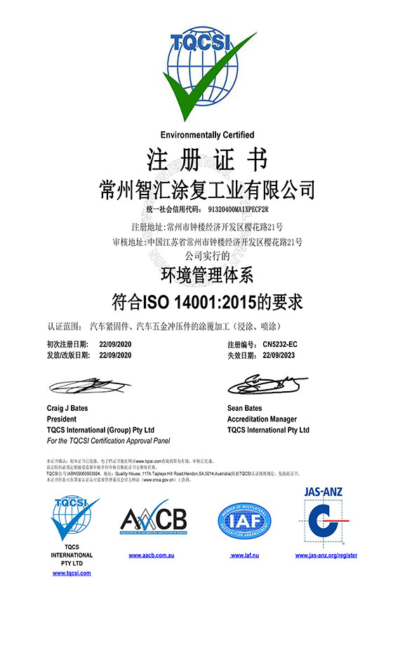 常州智匯新材科技股份有限公司,位于常州市鐘樓經(jīng)濟開發(fā)區(qū),是一家從事汽車金屬零部件表面防腐系統(tǒng)的高新技術型企業(yè),公司擁有8000平方米的智能化涂覆生產(chǎn)線基地和符合汽車廠體系要求的標準化實驗室,團隊擁有20年涂覆行業(yè)從業(yè)經(jīng)驗。